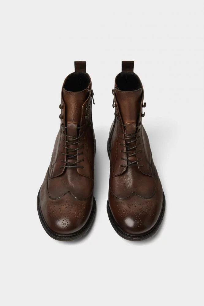 Шкіряні чоботи з бічною застібкою-блискавкою. Декоративні шви. Закруглена форма. Шкіряні устілки.